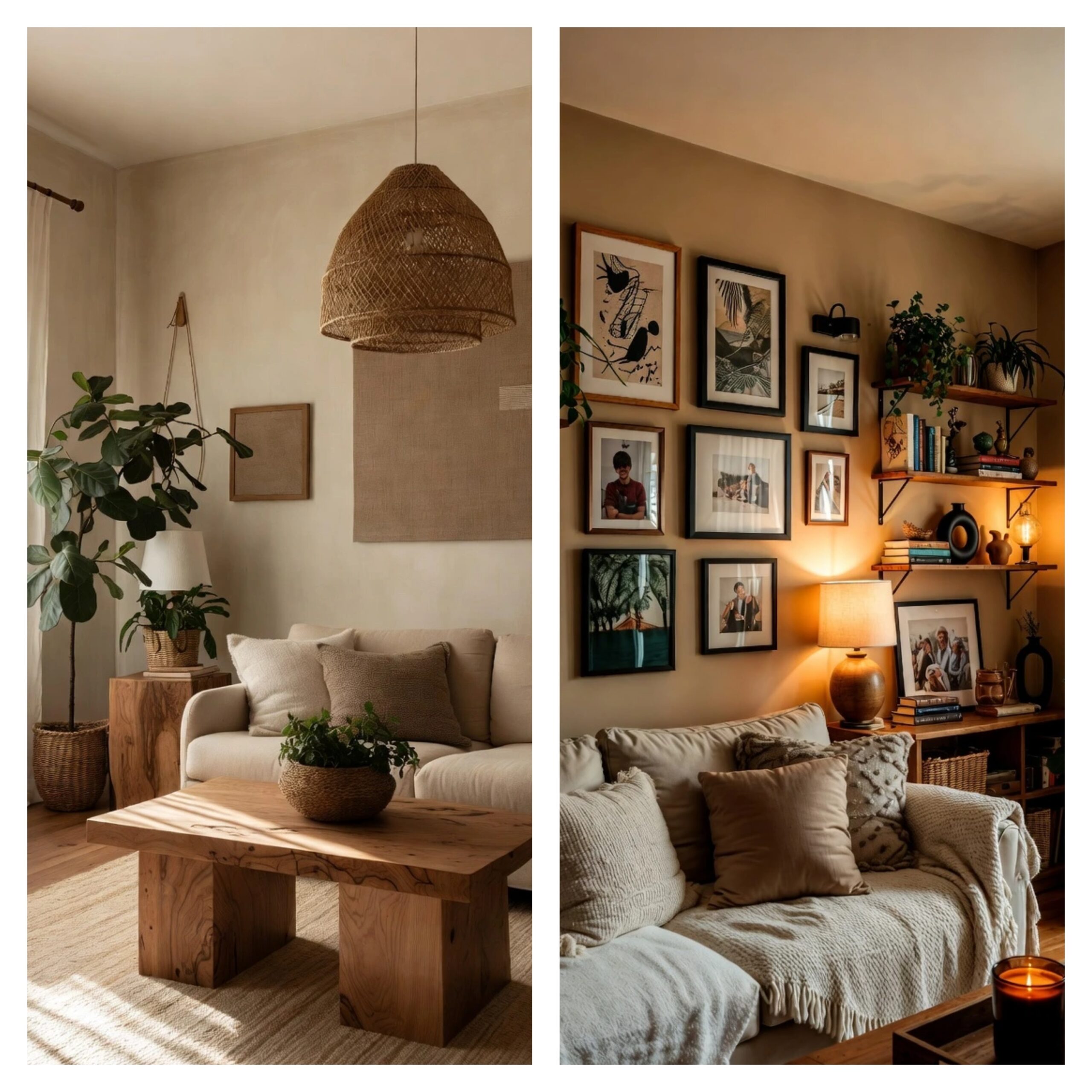 Layered textures are key to achieving this look. Think plush sofas, soft throw blankets, textured cushions, woven rugs, and natural fabrics like linen and wool. Mixing different textures adds depth and makes the living room feel lived-in and welcoming.