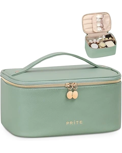 5- Prite Large Makeup Bag for Women (Waterproof Leather Cosmetic Case)