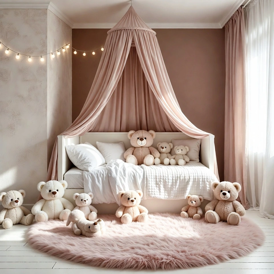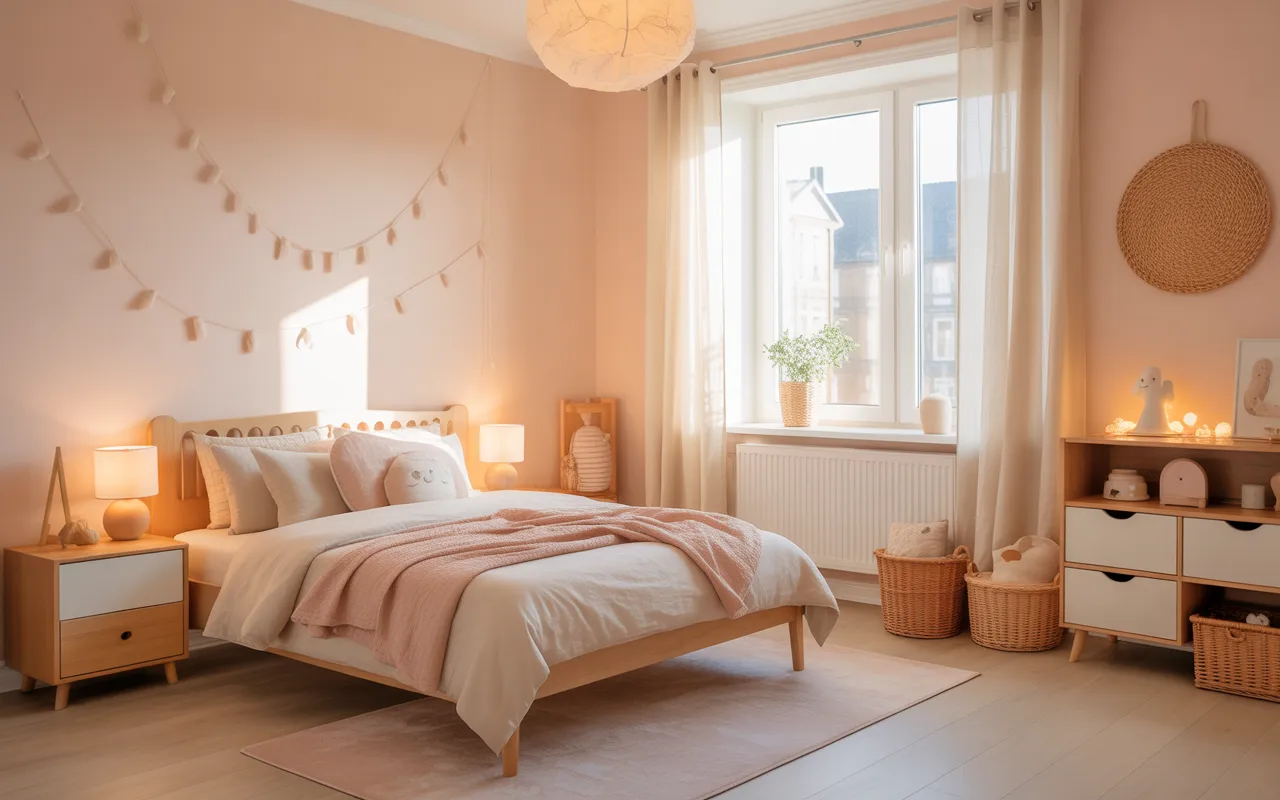 Blush pink is one of the most loved shades in kids’ interior design — and for good reason. It’s soft without being overly sweet, calming without feeling dull, and timeless enough to grow with your child. When paired with warm taupe, this palette creates a beautifully balanced room that feels safe, elegant, and comforting.