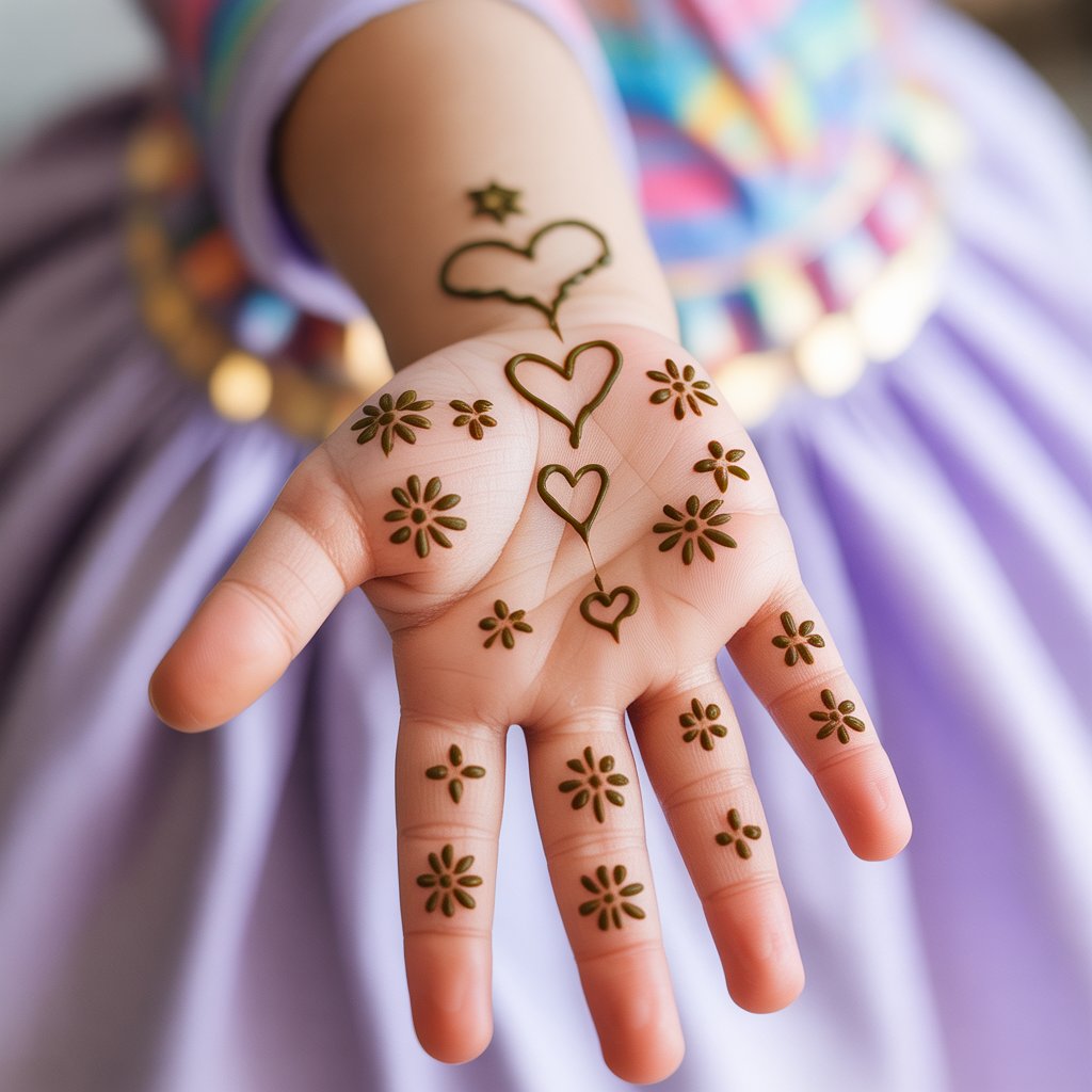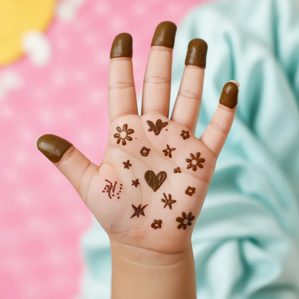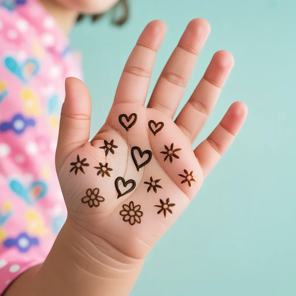 Children love mehndi too, but they usually prefer simple and cute designs. Small hearts, stars, flowers, and smiley patterns are perfect for kids.